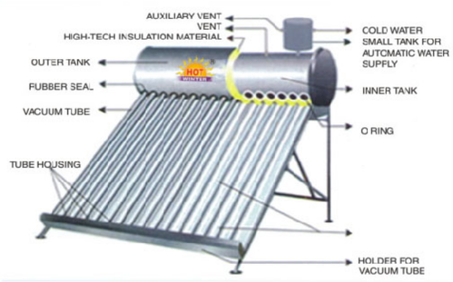 Là một thiết bị sử dụng nguồn năng lượng tự nhiên đến từ ánh sáng mặt trời để làm nóng nước. Bình năng lượng hoạt động bởi một bộ thu hút ánh sáng mặt trời . Và sau đó làm nóng nước.