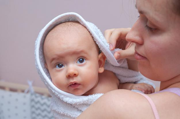 Sau khi tắm xong cho bé cần đặt vào khăn quấn kín từ đầu xuống chân rồi bế vào lòng, nhẹ nhàng lau người. Nếu quan sát kỹ, bạn sẽ nhận thấy môi em bé bị tái đi khi mới cho ra khỏi chậu và sau khi được mẹ ủ ấm, môi sẽ hồng hào trở lại. Lúc đó, hãy từ từ mở khăn tiến hành mặc quần áo cho bé. Khi lau người, mẹ cần lau khô những bộ phận quan trọng ngực, lưng, mặt, giữ ấm gan bàn chân. Đối với trẻ lớn hơn bé có thể tự mình lau người và mặc quần áo.